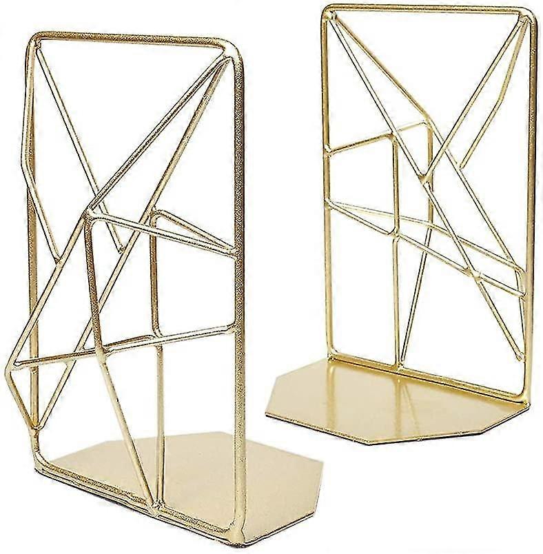Iron Decorative Bookends, 2pcs Book Stoppers Black/Gold,Retro Geometric Book Ends for Shelves