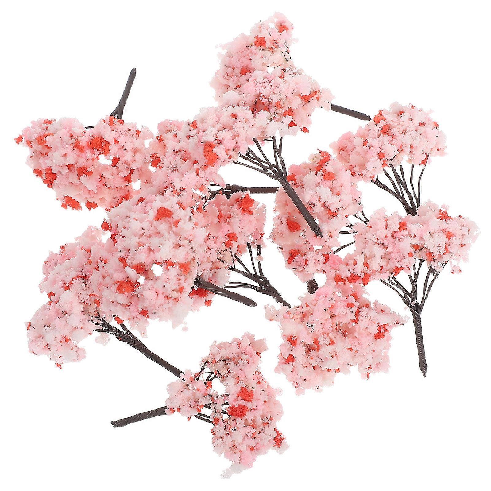 12pcs Mini Cherry Blossom Trees for Model Railroad Diorama Scenery, Micro Landscape Ornaments with Iron Wire for Sand Table, Train Scenery DIY Crafts
