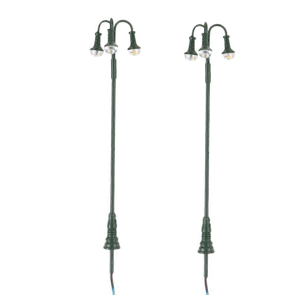 Model Railway Lamp Micro Landscaping Street Lamp 3-Head Light Models For Mini House Interior Model Green 2Pcs