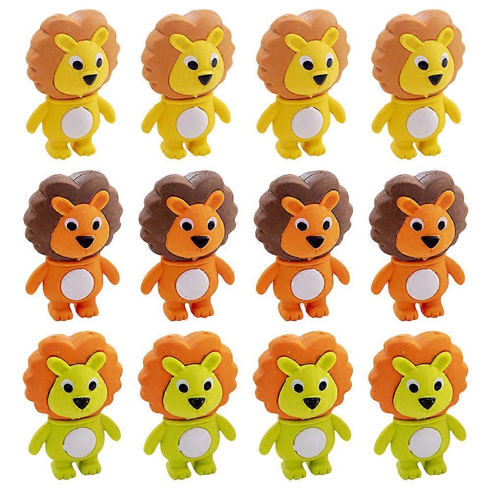 12 Lion Shaped Erasers for Pencils, Lightweight TPR Animal Erasers for School Supplies, Party Favors and Writing Correction