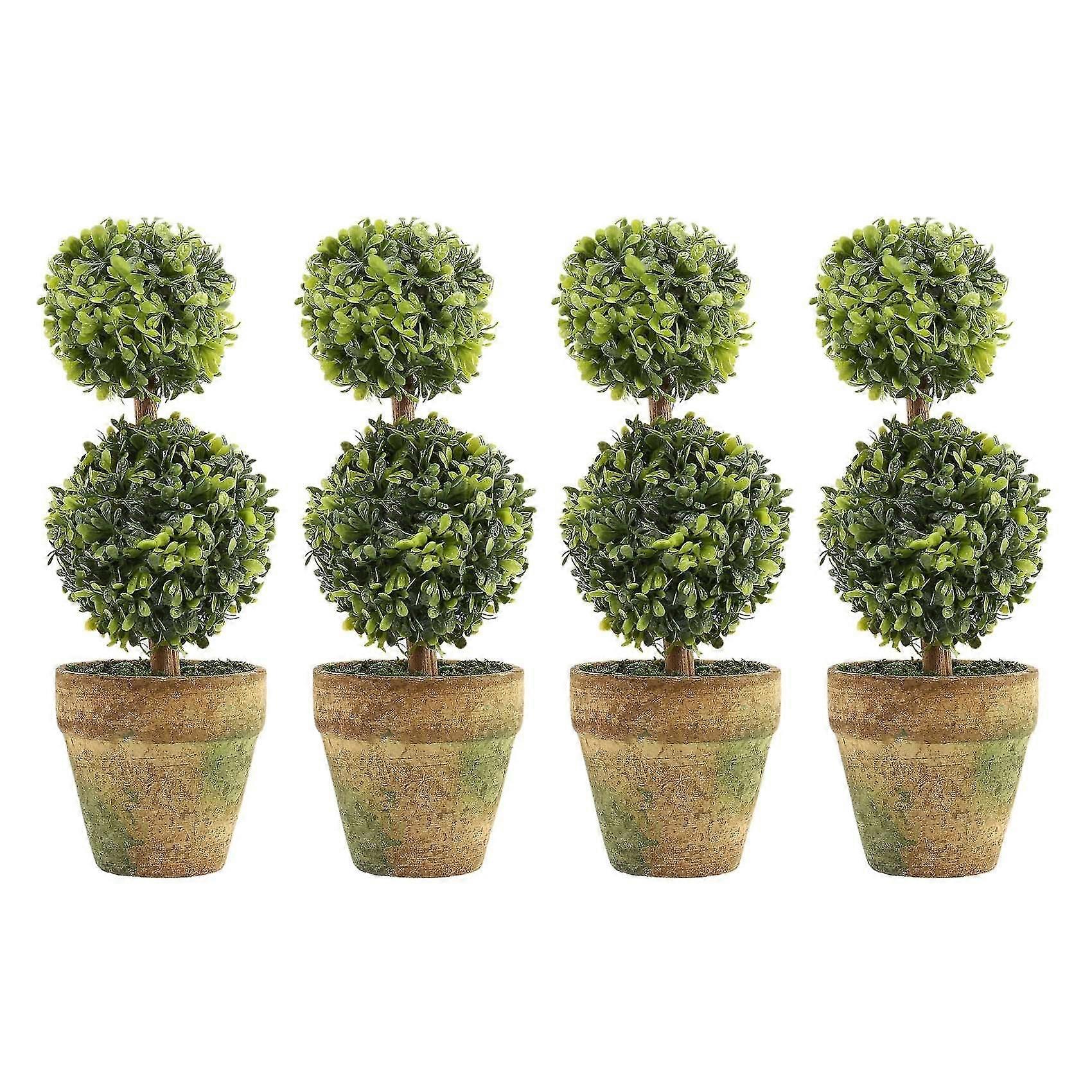 4x Artificial Plastic Trees In Pots Plant Potted Decor Garden Yard Indoor Outdoor Pattern:two Ball