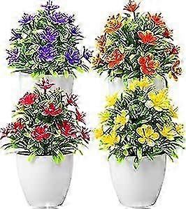 Pack of 4 artificial flowers in a pot, artificial flowers, small artificial plant, mini artificial plants like real ones in a pot for home, office, ca