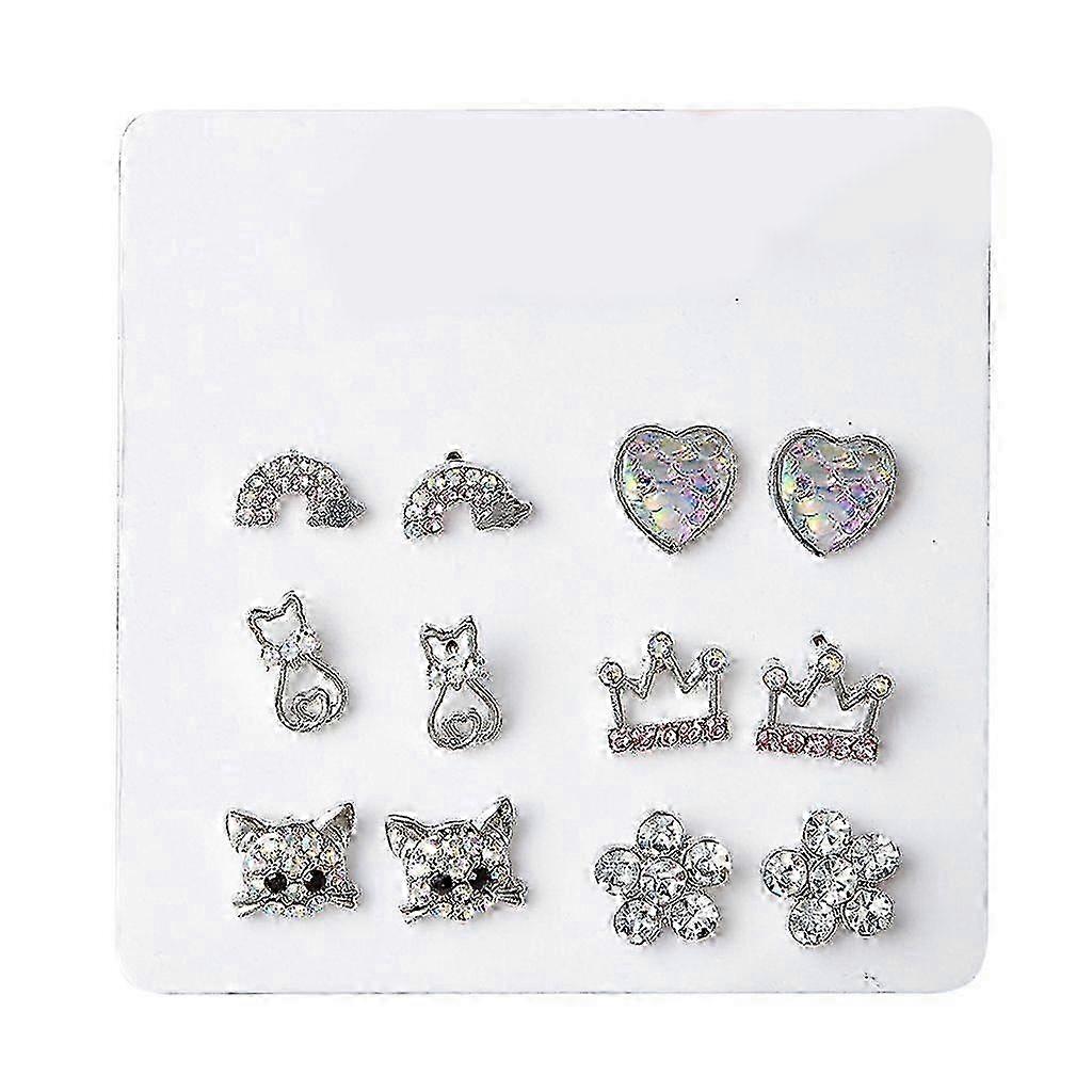 Silver-plated Zircon Stud Earring Set For Women Girls Fashion Jewelry Gift