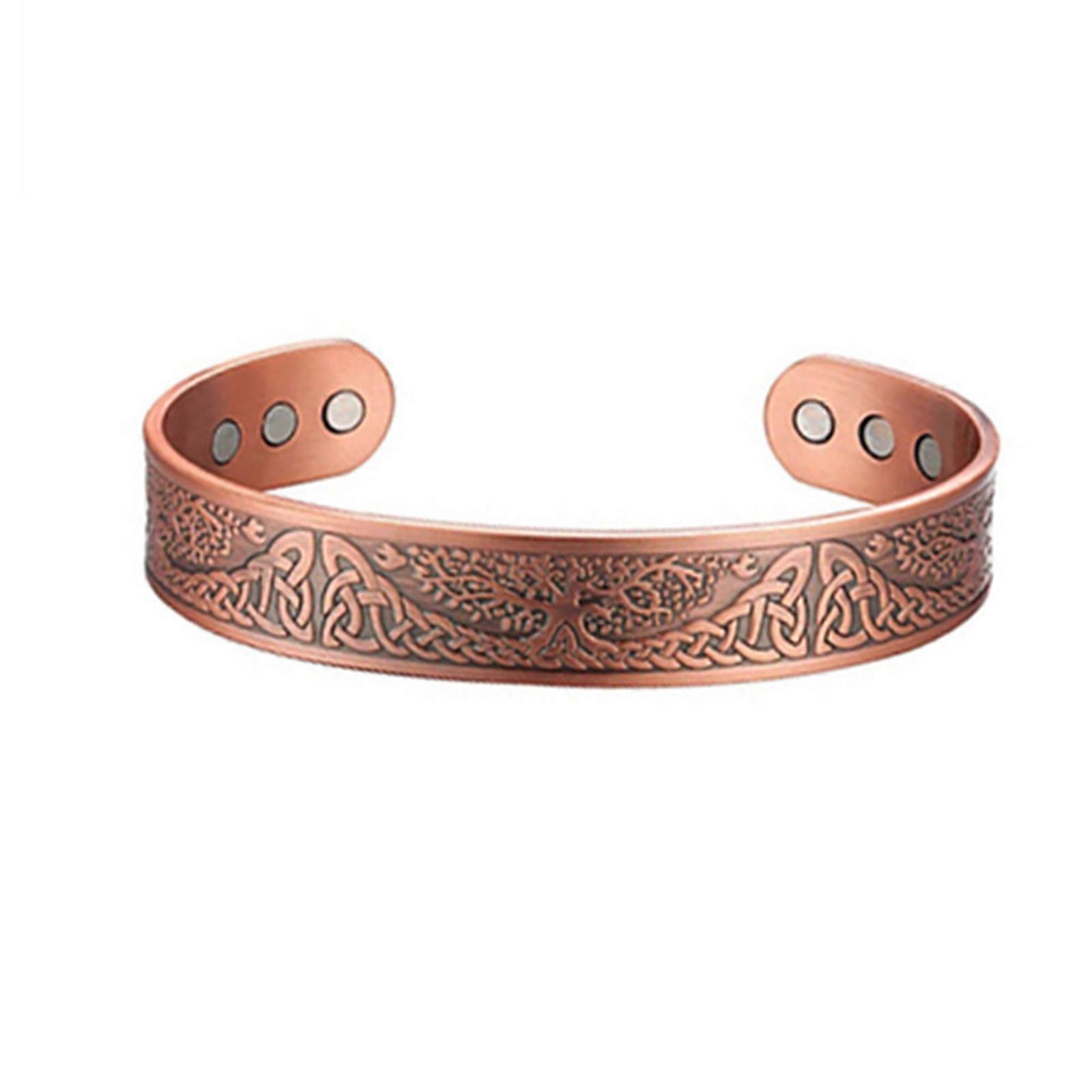 Quality - Made of alloy, without lead and nickel, long lasting lacquer coating to avoid oxidation, scratches resistant, comfortable and durable, won’t have to worry about tarnishing or skin irritation Adjustable Design - Open design is easily resizable, fit to any wrist size with just a light squeeze, allows you to easily adjust the size of the copper bracelet at home, generous, practical, beautiful Tree of Life Design - The tree of life pattern are the oldest and most popular celtic symbols, is a symbol of good luck, love and faith, inspired by ancient simple, but there is no lack of modern fashion sense Classic And Unique - Beautiful and functional magnet bracelet, generous and attractive, suitable for any occasions and it can compliment your individual style Service - We are committed to providing our customers with reliable products, if you have any questions about our products, we will respond to you within 24 hours on weekdays <b>Features: </b></br></br> <br> 1. With unique design . <br> 2. Suitable for wear at all occasions which can foil individual style. <br> 3. The collision of fashionable and elegant.</br><br>   <b>    Specifications</b></br></br> <br>Material: Alloy <br>Size:  18.5 *  1.5 cm <br>Color: Red copper color <br>Quantity: 1 pcs <br>The package includes: <br>1 pcs copper magnetic bracelets</br><br>   <b>Warm Tips</b></br></br> <br> 1. If you have any problem with your purchasing, please let us know by E-mail, we will offer our assistance in 24 hours on working day.   <br> 2. Due to manual measurement, the size may have a certain error. <br> 3. Due to different screen settings and resolutions, there will be slight color variations. Please refer to the actual object. </br><br>