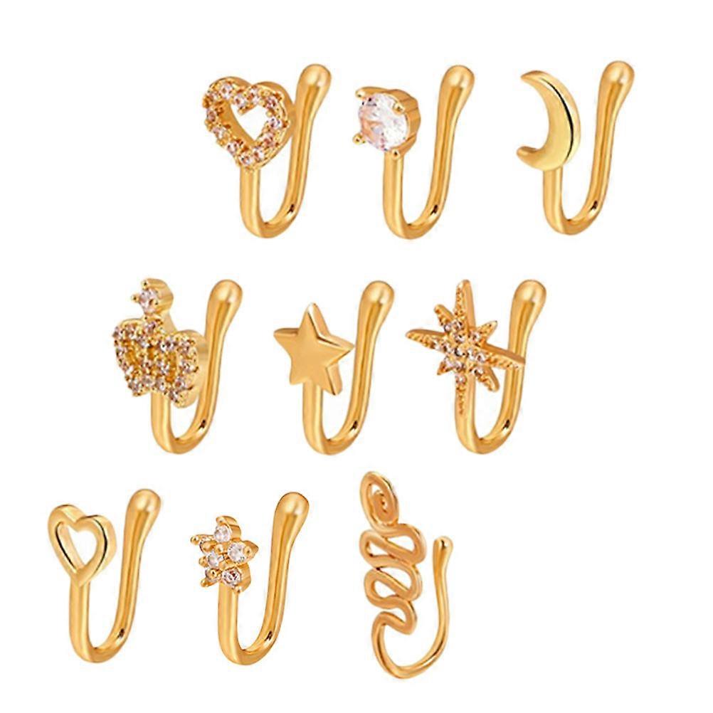 Copper Clip Nose Rings Set of 9 Non Pierced Nose Cuff Jewelry for Women Vibrant Colors Party and Daily Wear