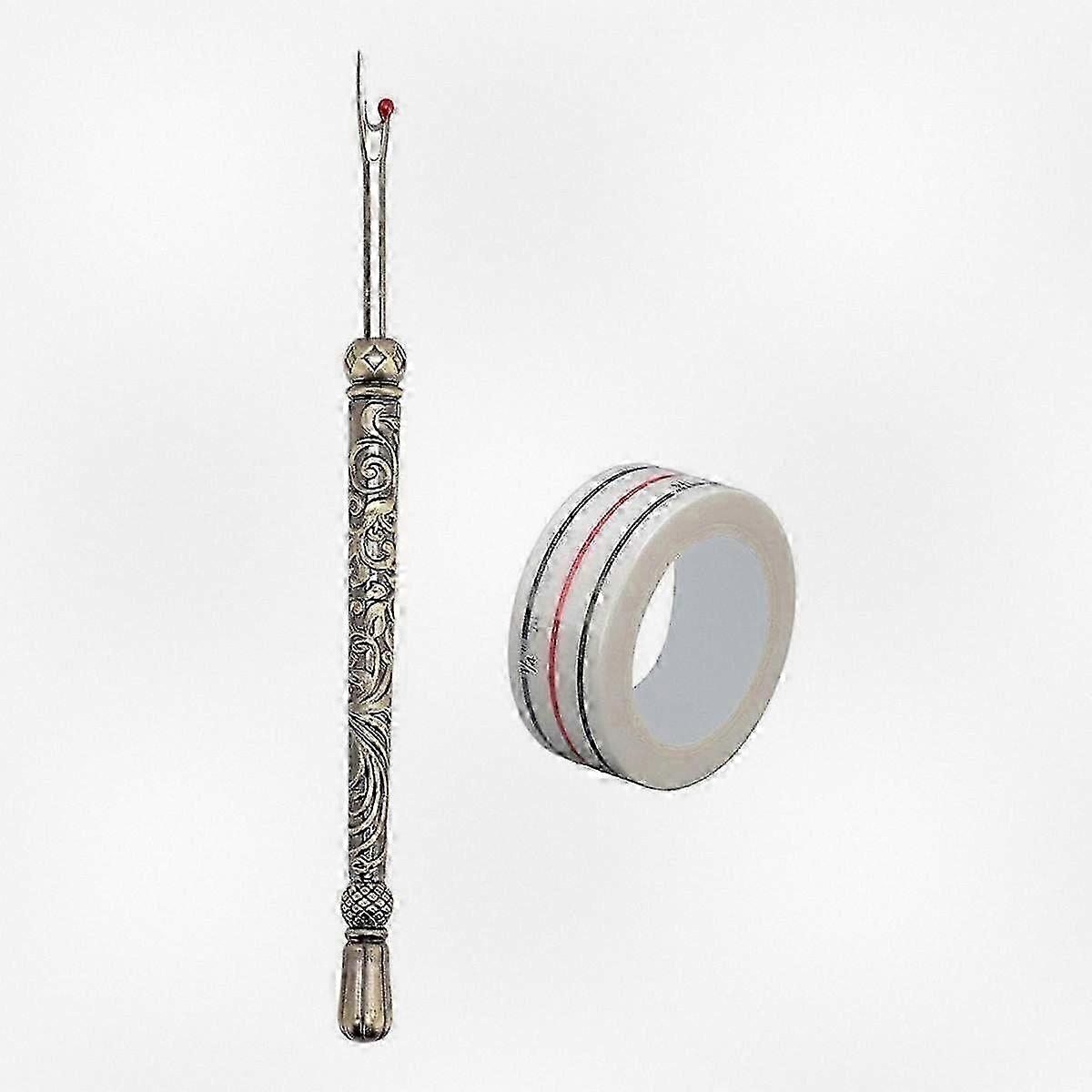Copper sewing seam ripper and thread remover kit with positioning tap for crafting and fabric work