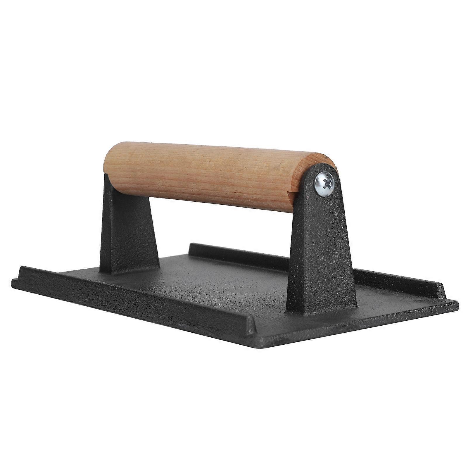 Cast Iron Grill Press Steak Bacon Weight Press Barbecue Griddle Press with Wood Handle