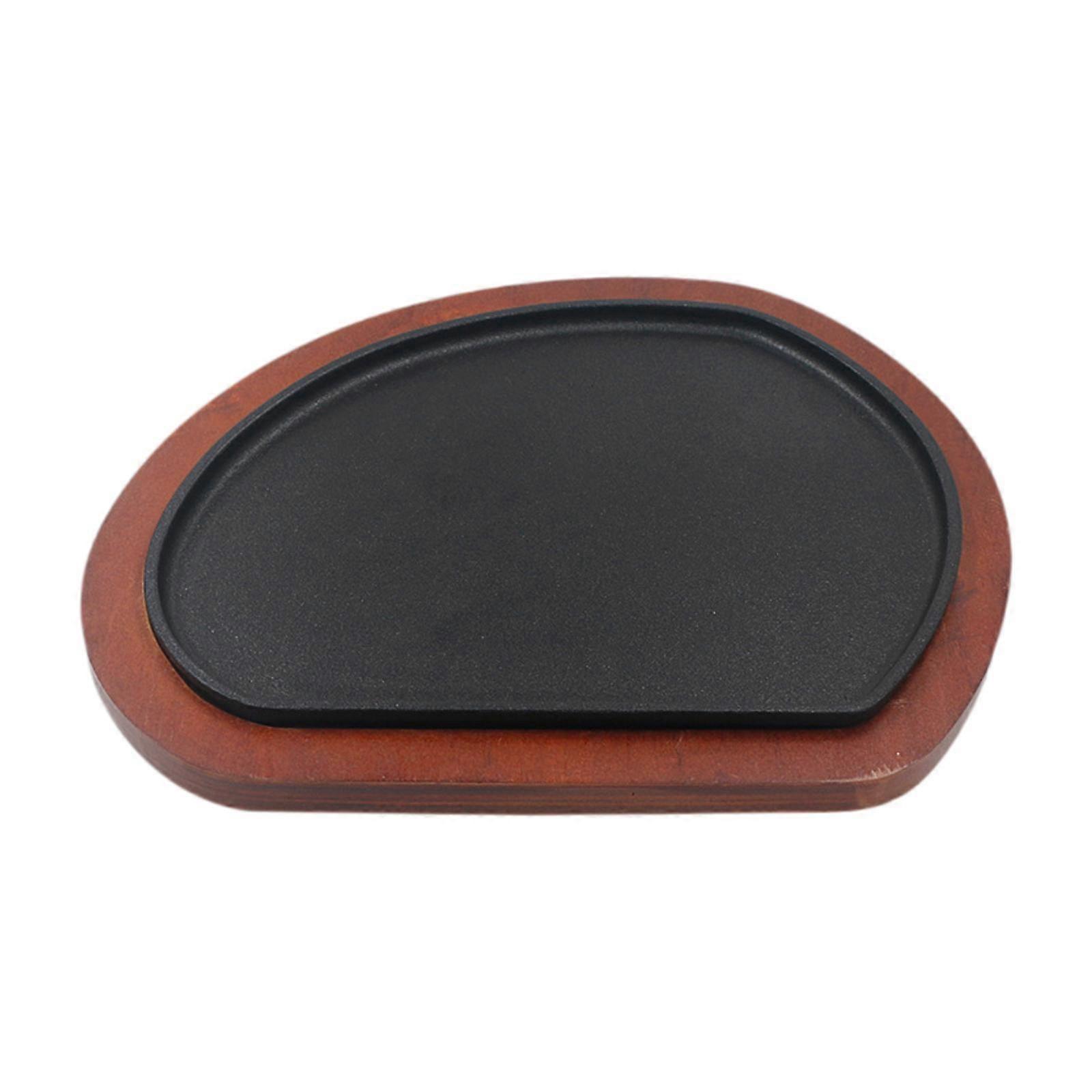 Cast Iron Steak Plate Wood Tray Fajita Skillet for Restaurant Kitchen Picnic