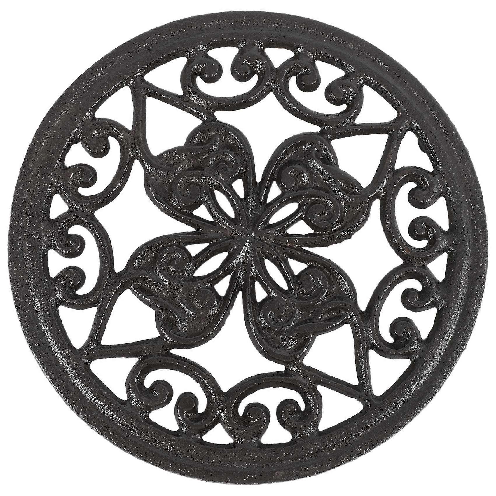 Cast Iron Teapot Trivet with Rubber Pegs for Dining and Kitchen Table, 7 Inch Diameter