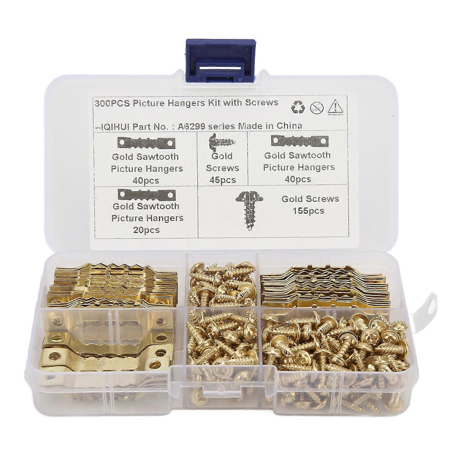 100Pcs Sawtooth Picture Hangers Rust Resistant Stable Durable Seamless Sawtooh Frame Hanging Hooks with 200Pcs ScrewsGold