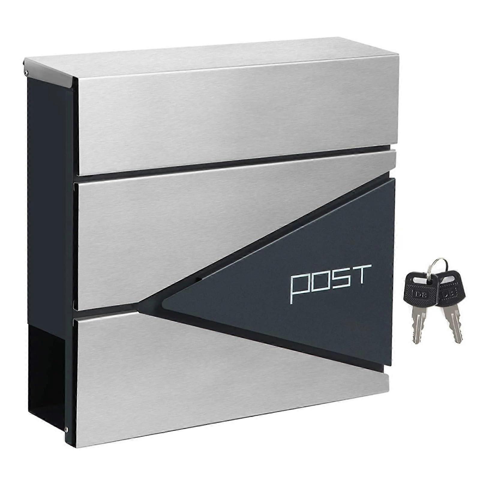 1. quality steel construction: This mailbox made of quality stainless steel is designed for durability. It has a powdercoated finish that makes it rainproof, scratchresistant, and wearresistant. 2. Keep your mail dry: This mailbox features a weatherproof design to ensure that your mail and important documents stay dry in any weather, protected from rain, snow, and moisture. 3. Easy to install: This universal wallmounted mailbox can be easily and securely hung on walls and gates. It comes with predrilled holes and mounting screws for hassle installation. 4. Large capacity: The mailbox can hold magazines and large envelopes. Its generous, spacious interior provides ample room for several days' worth of mail.