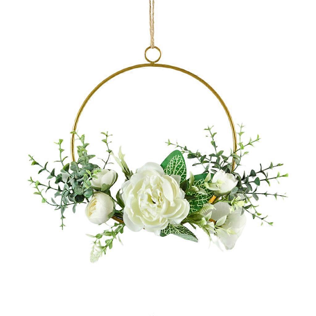Wrought Iron Wreath Artificial Flower Pendant Hanging Wall Hoop Garland for Wedding Decor