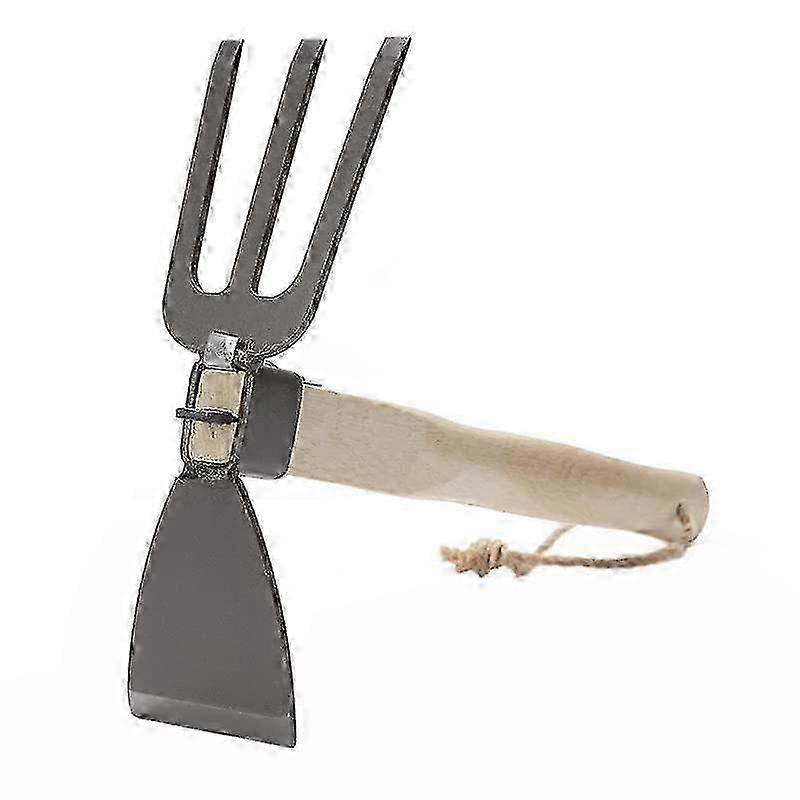 Hoe/Fork Combo 3.25-Inch Carbon Steel Blade Head 3-Prong Fork Weeding Tool For Vegetable Gardens And Lawns