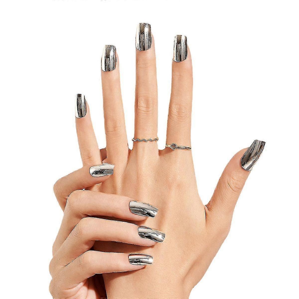 Wear armor advanced european and american silver mirror fake nail tip finished product Bonus: Get a free professional-grade nail file worth 5 with yo