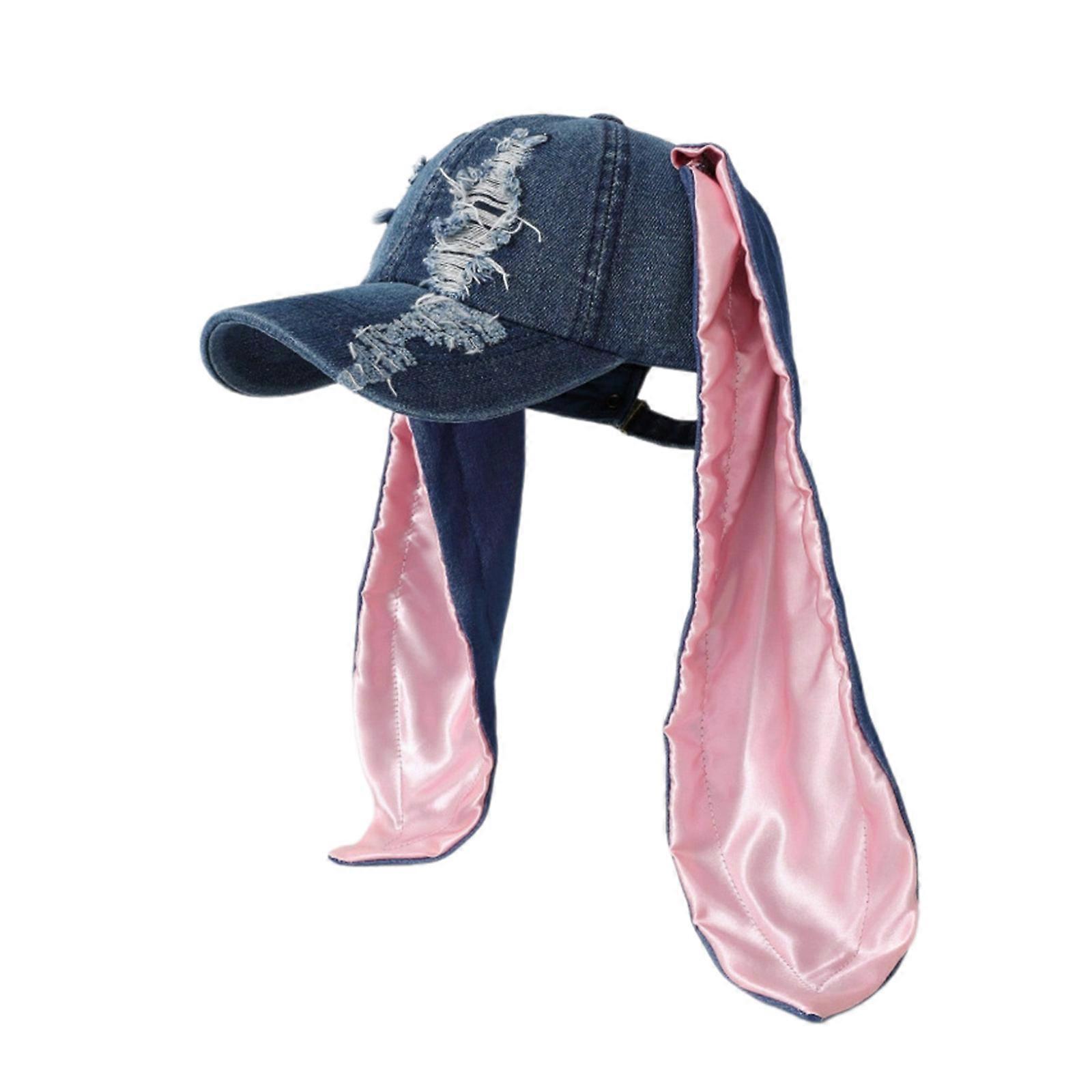 Distressed Baseball Caps with Long Rabbit Ears Adult Sunproof Visors Hat Holiday Outdoor Cycling Hiking Hat for Teens Dark denim blue two