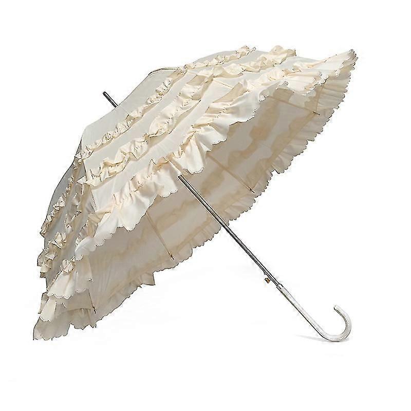 Cute Princess Lace Umbrella with Long Handle Semi-Automatic Sunny Rain Wedding Umbrella