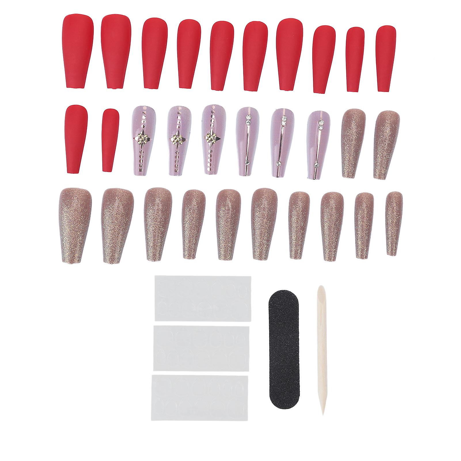 Long Glossy Reusable False Nails, Ballerina Style, Full Cover