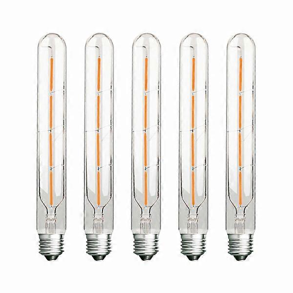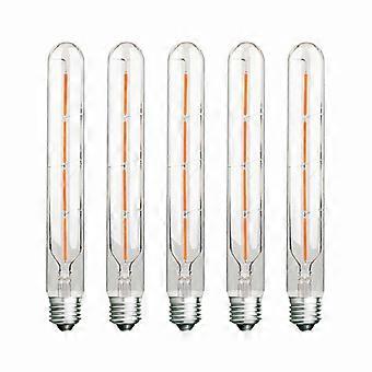 Set of 5 Long Tubular Filament Bulbs, 4W, E27 Socket, Warm White 2700K, AC 220-240V