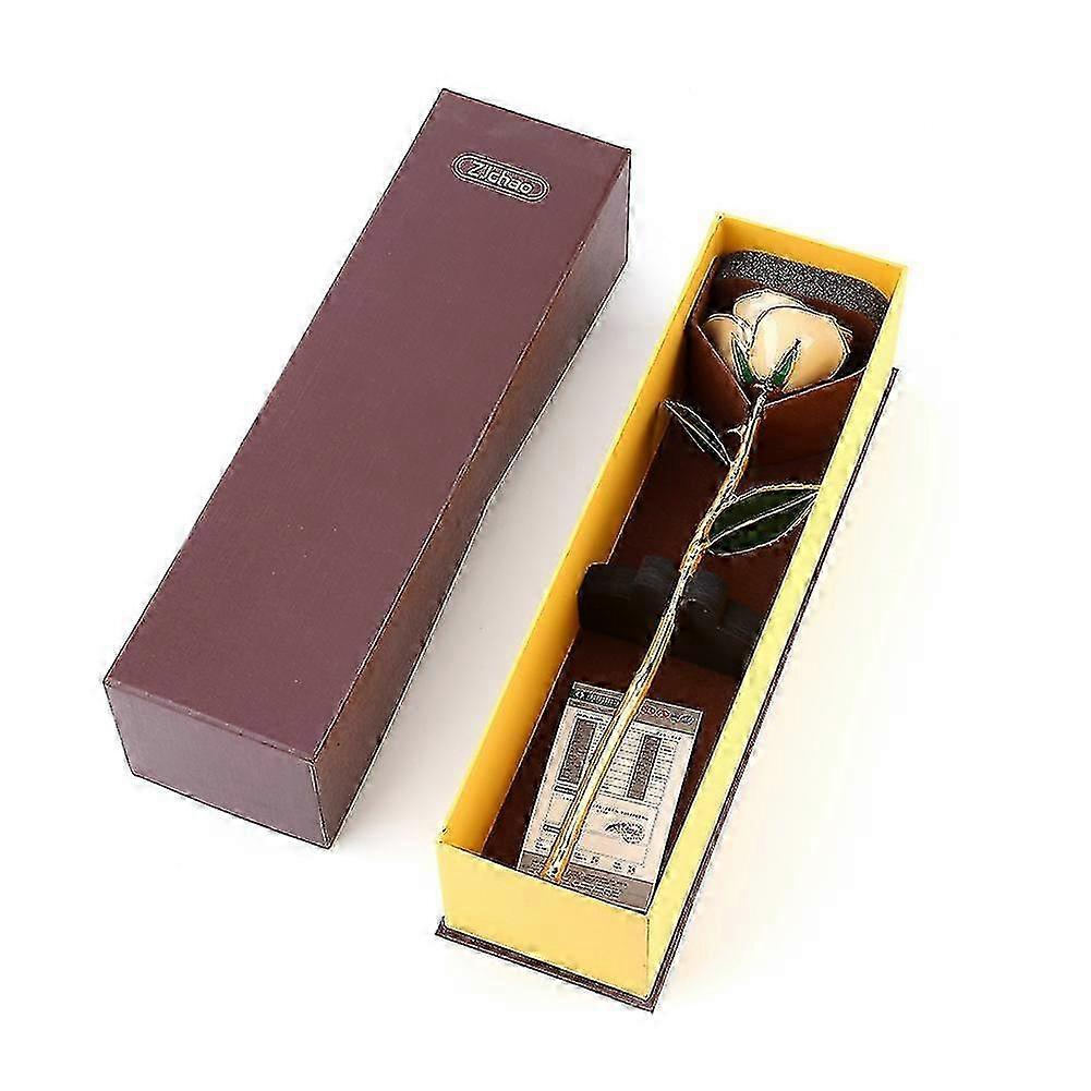 Long Stem 24k Gold Dipped Rose Flower Straight Handle Ornaments Handcrafted Gift