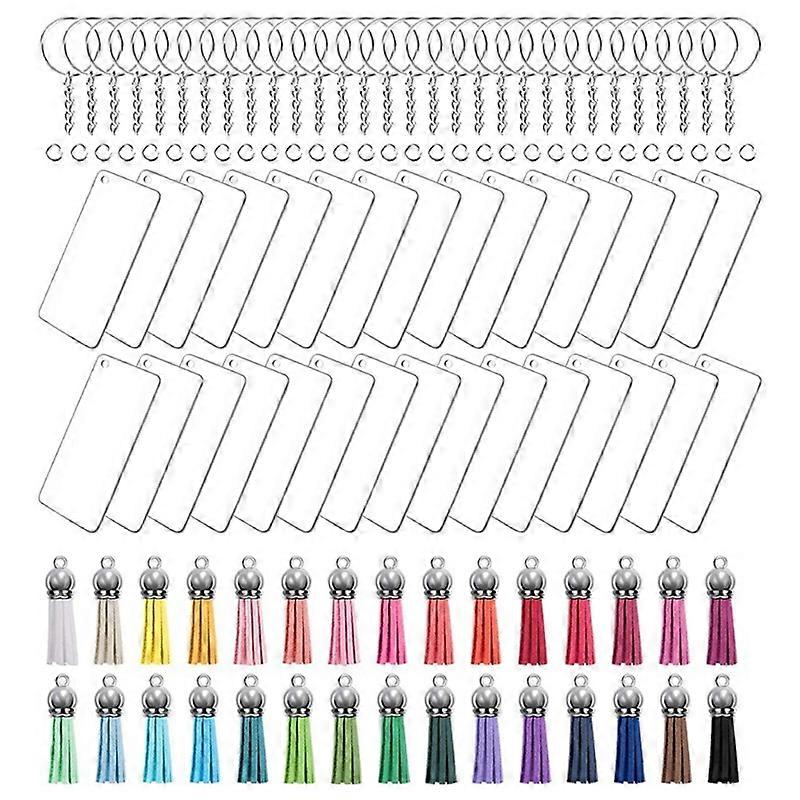 Rectangle Acrylic Keychain Blanks With Key Chain Rings Tassel Pendant