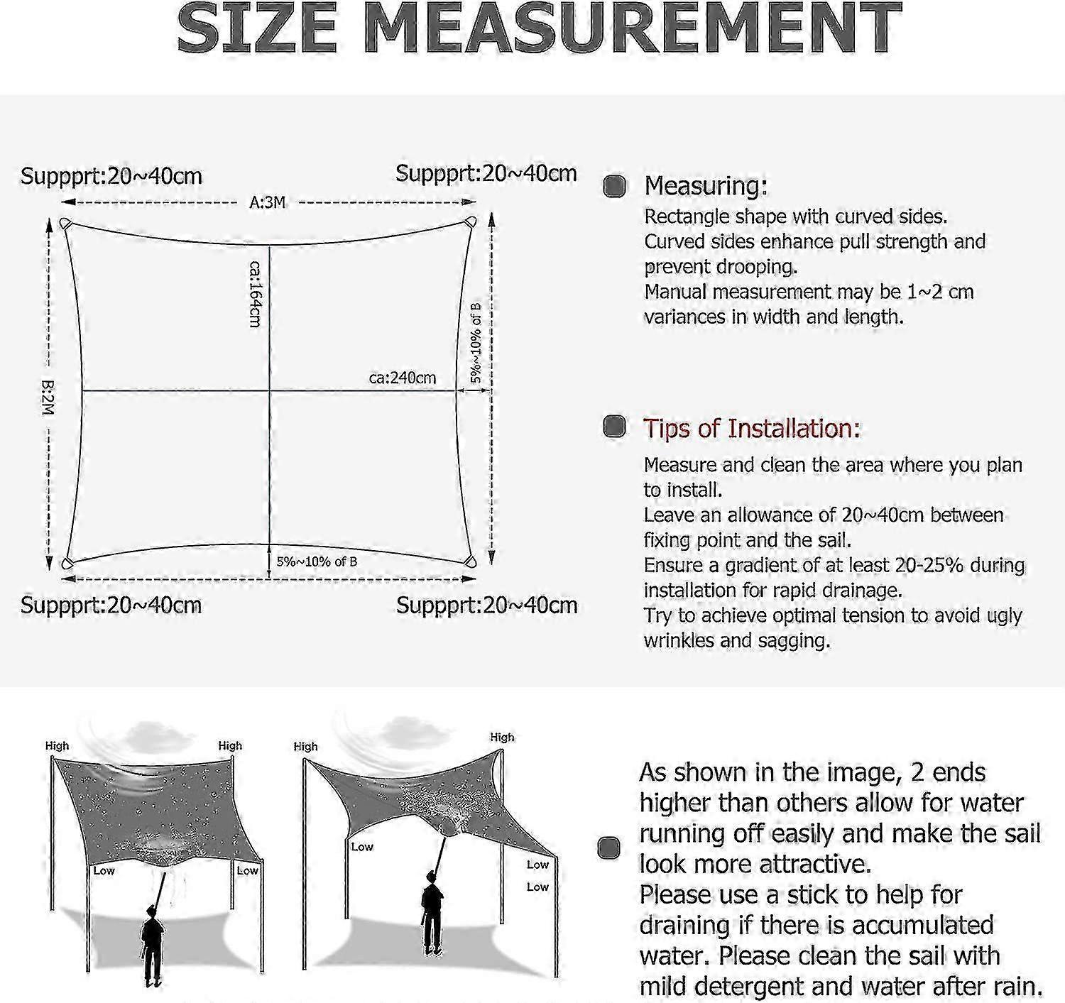 Rectangular Shade Sail, Resistant And Breathable For Anti Uv, With Rope (2x3m, Grey) best gift Garden Terrace Camping Pool Party,