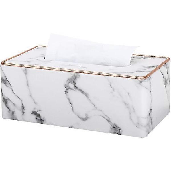 Rectangular Leather Handkerchief Box (Gray Marble Pattern)