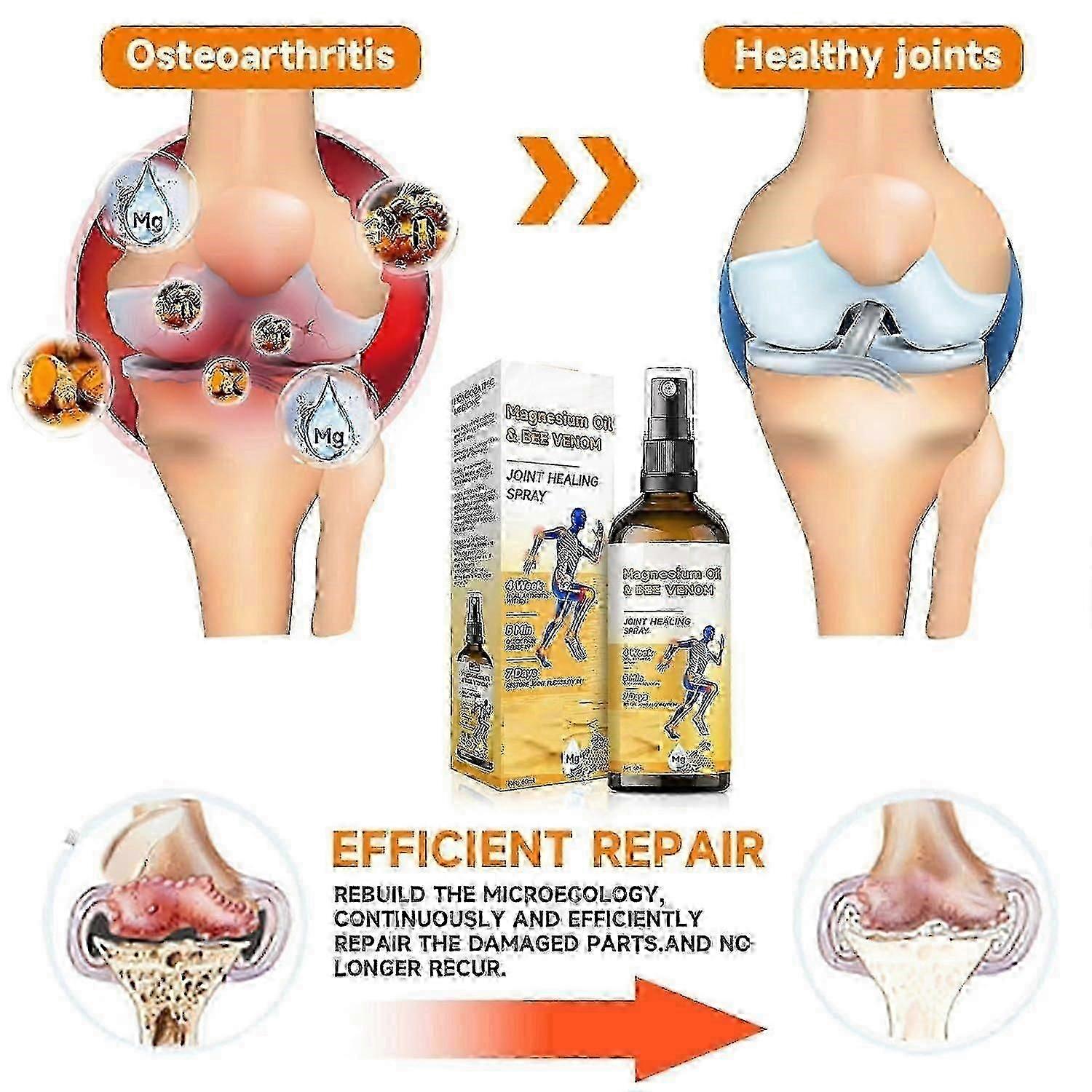 NATURAL FOR JOINTS Our Magnesium Oil Bee Venom Joint Spray combines the power of bee venom, honey and essential oils to relieve aching joints, improve flexibility, relax muscles, and improve mobility. GENTLE & NON-OILY FORMULA Bee Venom Spray is suitable for all skin types and provides a gentle, non-irritating and fast absorbing formula that leaves no greasy residue. FAST ABSORPTION The active ingredients in the spray are quickly absorbed by the skin and target the affected areas to provide instant relief and long-lasting comfort. FOR EVERY LIFESTYLE - Perfect for commuters, students, seniors, athletes and retirees - for anyone who wants improved mobility and comfort for their joints. EASY APPLICATION & FAST RESULTS - Massage Bee Venom Spray into the skin twice daily - morning and evening - and get noticeable relief after just 3-5 days with regular use.