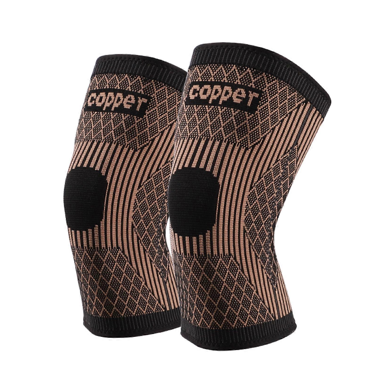 Copper Knee Brace for Arthritis Pain and Support - Breathable Nylon Knitted Pads - for Sports, Badminton, Cycling - Men, Women - Brown - 1 Pair