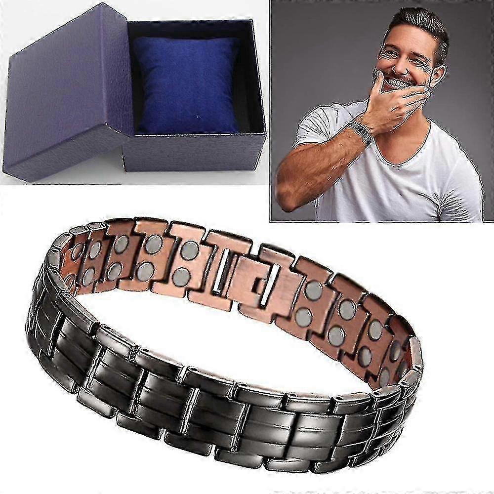 1 Pcs Men's Copper Magnetic Bracelet For Arthritis Pain Relief Elegant Solid Copper Bracelets With Double-row Strong Magnets, Bronze Black Double Row