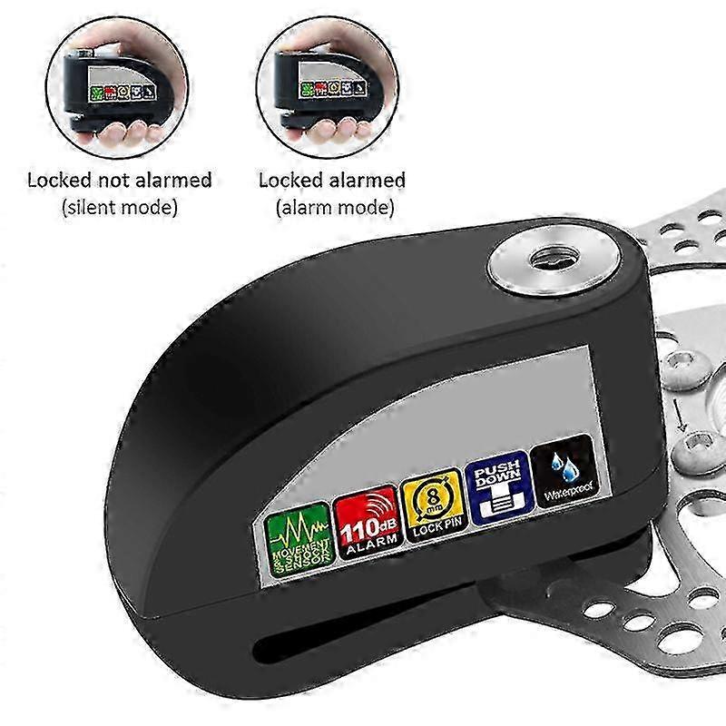 the alarm device freely according to your needs.Versatility: Suitable for motorcycles, bicycles, scooters and any vehicles with holes or spokes on the wheels.Instructions for use:1. Open the package, take off the small round pad in the groove, take off the small hexagonal wrench and save it for when you replace the battery.2. This intelligent alarm lock has two functions: alarm or no alarm, which can prevent thieves and avoid disturbance, and is widely used for motorcycles, electric cars, bicycles, mountain bikes, etc.3. Alarm state: press the lock core, enter the second gear (lock core and lock cover level), hear the 34;beep 34; sound, the lock into the alarm state, 5 seconds later, when the lock or car by a certain vibration that 34;beep, beep, beep 34; 3 beeps, again Vibration, the alarm sound immediately, continuous vibration, continuous alarm, each alarm sound lasts 10 seconds.4. No alarm state: press the lock cylinder, enter the first gear (lock cylinder about 5mm higher than the lock cover), do not hear the 34;beep 34; sound, the lock into the state of non-alarm, the same as ordinary mechanical locks.5. When you hear the 34;beep, beep, beep 34; continuous sound, indicating that the battery has been exhausted, remind the owner needs to replace the battery. To replace the battery, please use the small wrench equipped with four screws to turn out, take off the top cover can be replaced, please pay attention to the battery 34;positive and negative 34; pole.Specifications:Model: L4141GTColor: silver\black\bronze(optional)Material: stainless steel 43;zinc alloyBattery type: LR44(AG13)Package size: 17 * 11.7 * 7cmPackage weight: 989gPackage List:1 * Lock3 * Keys6 * Spare Battery1 * Screwdriver1 * Carrying Bag1 * Reminder Cable1 * Instruction Manual