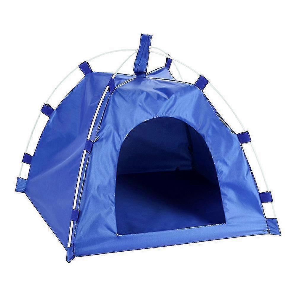 Waterproof Oxford Cloth Pet Tent Dog Cat Detachable Fiber Rod Folding Sleeping Beds Mat Puppy Kitten Outdoor Travel Supplies (Blue)