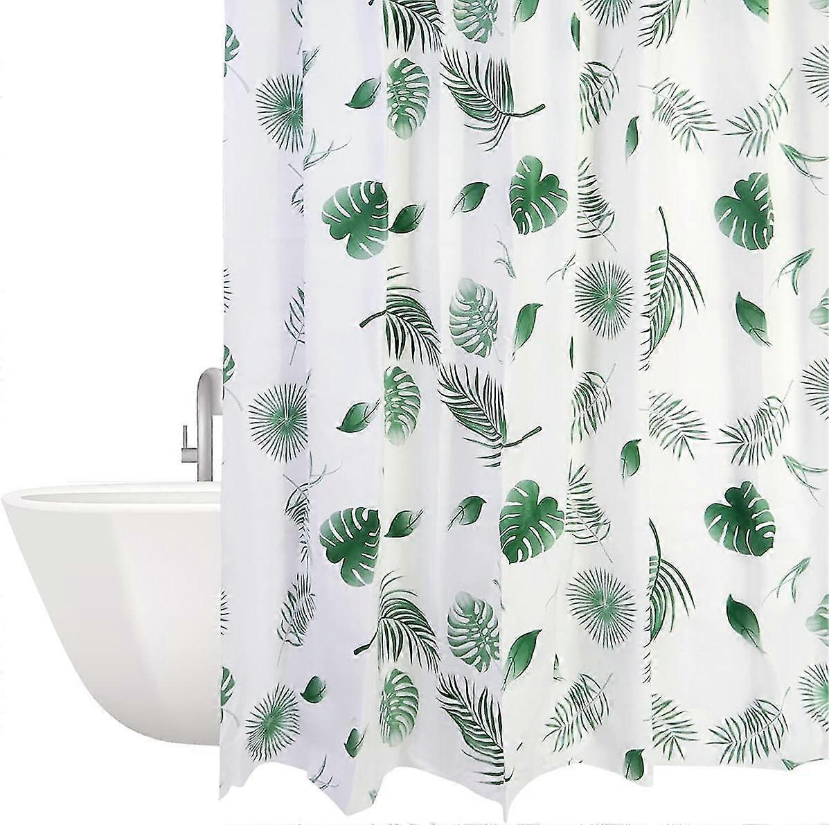 Waterproof Mildew Proof Shower Curtain 180 X 180 Cm Antibacterial Washable With 12 Shower Curtain Rings (leaves) (green)