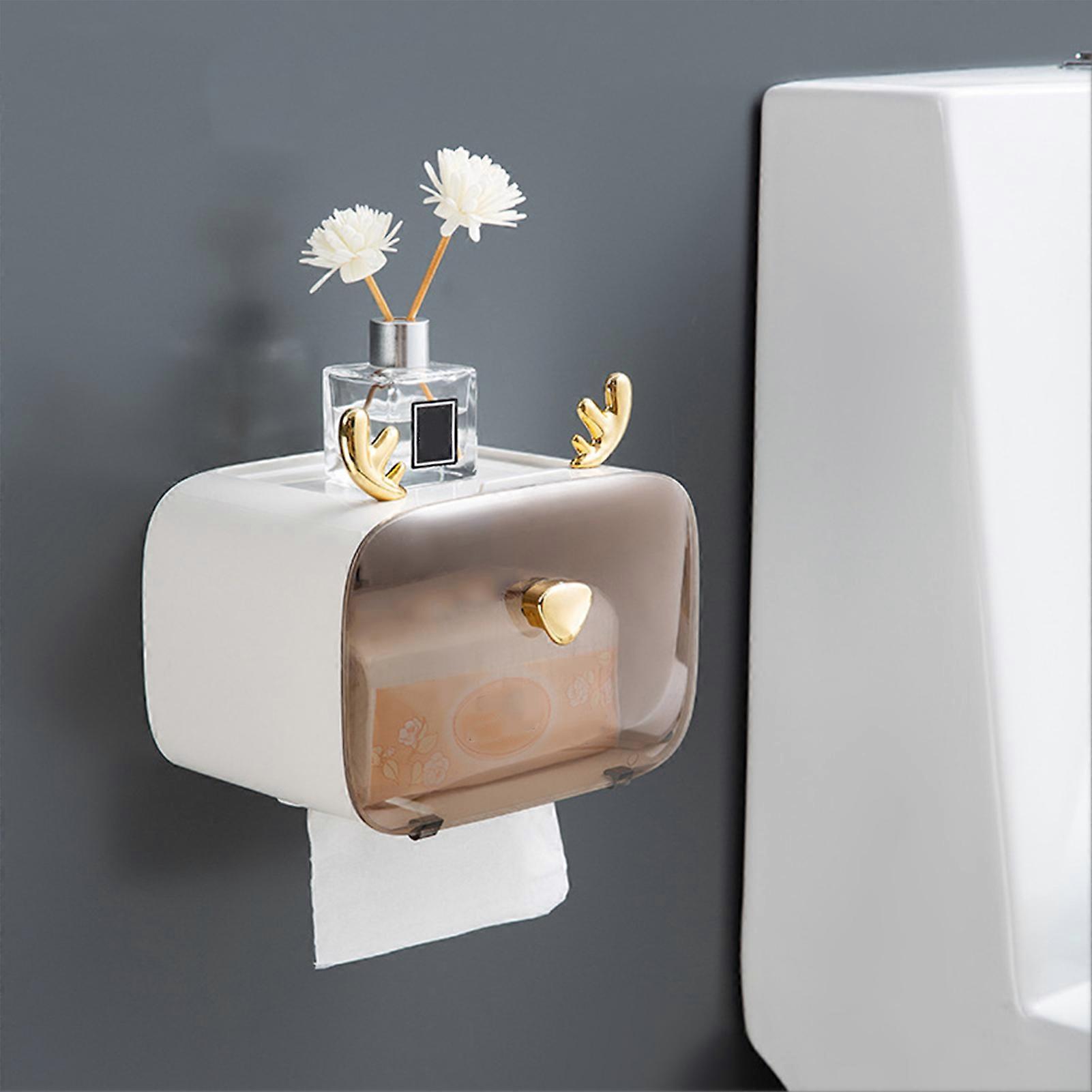 Waterproof Toilet Paper Holder Cute Rod Antlers Transparent Window Adjustable Hanging Wall Mounted Tissue Box HolderWhite
