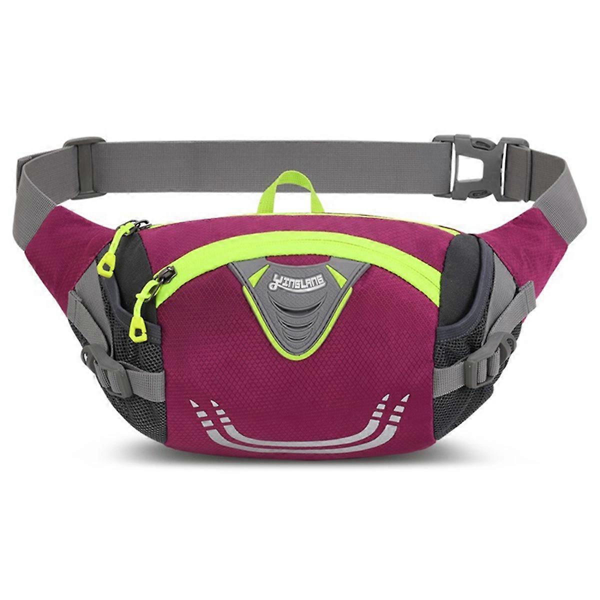 Waterproof Nylon Hiking Fanny Waist Pack Sports Bum Waist Bag Cycling Running Fishing Hiking Waist Bag Rose Red