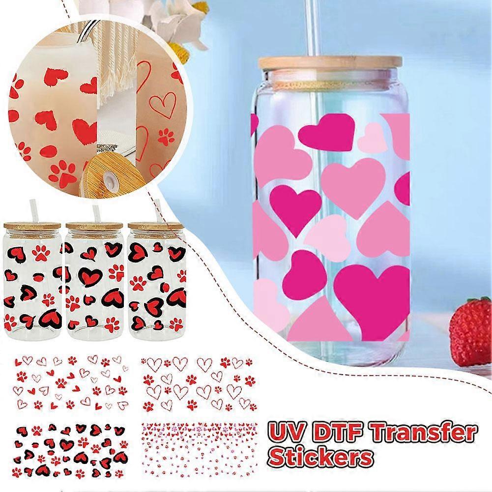 Waterproof Valentine's Day Heart Pattern UV DTF 16oz Removable Sticker