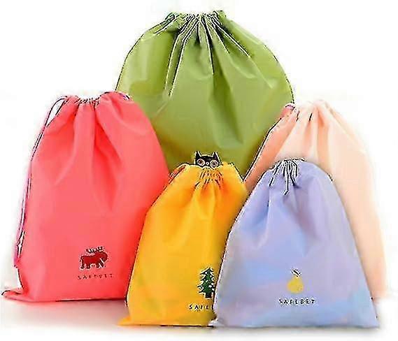 Set of 5 Waterproof Drawstring Bags, Medium, PE Plastic, for Travel and Storage
