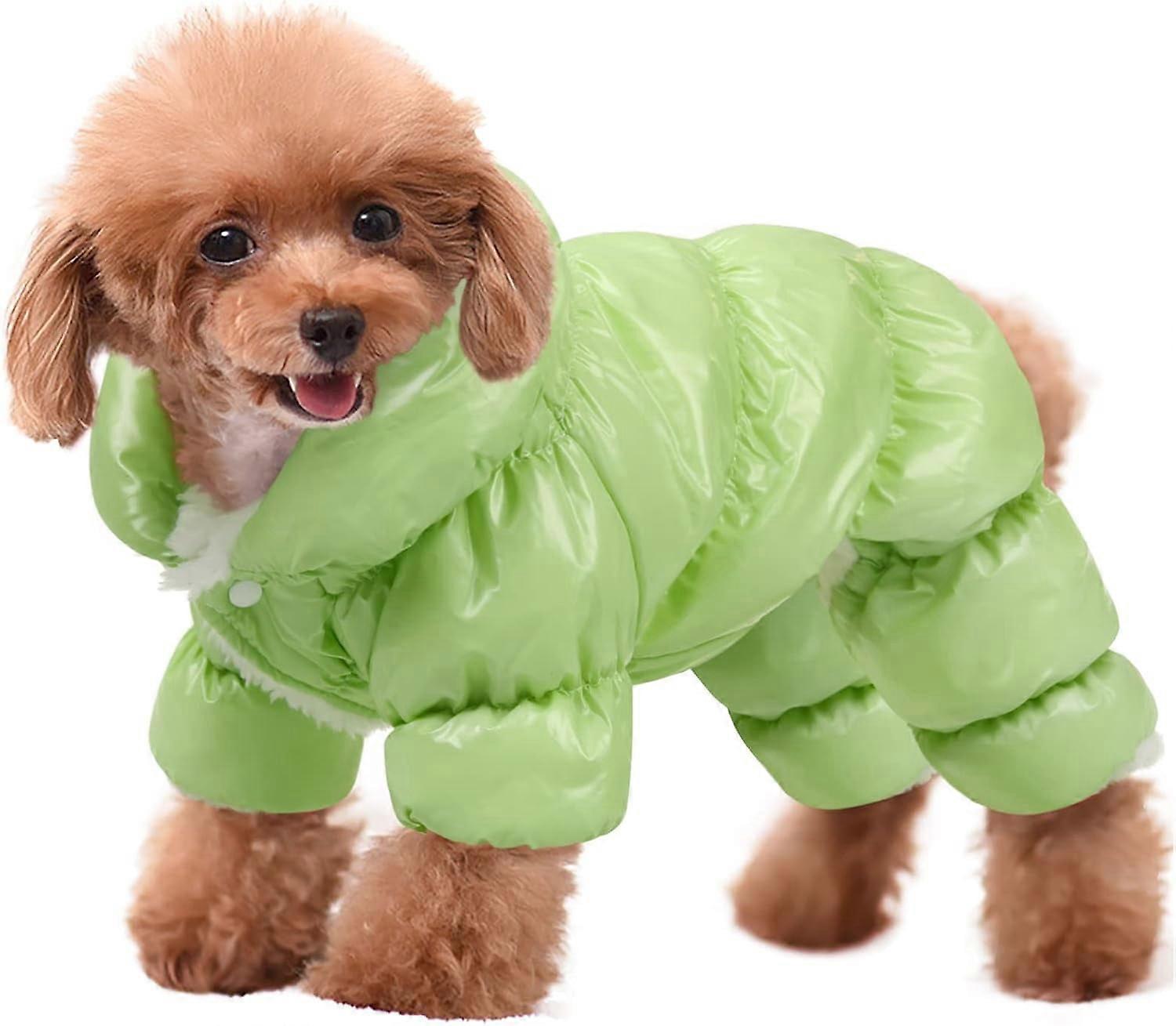COLLAR DESIGN & BUTTON CLOSURE - The solid color warm dog puffer jacket with elastic waist and elastic four-leg style, snap design on front of the pet jacket, very easy to put on and take off. Turtleneck design offers extra protection, keeps pets from the cold snow windy weather.
