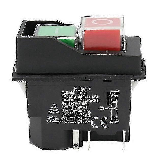 This switch have the following function that derived from power-off and under voltage protection:1. Double Pole cut off 2. Brake function with one pole cut off 3. These two versions can be combined with overload protection switch to achieve under voltage and overload protection Widely used in machine tools, large-scale power tools, garden machinery above, belonging to the safety switch, the device will not turn on after power off unexpectedly, need to press the green start button will turn on. 100% Brand New and high quality. Product name: Electromagnetic Push button switch Model: KJD17 Rated Voltage:AC250V Rated Current: 18A(AC-1) 15A(AC-3) Coil Voltage: 220-240V Rated Frequency: 50/60Hz Pin quantity: 5 Pins Degree Protection: IP55 Number of operating Cycles: 5E4 Ambient temperature: T85/55 colour:black Material:plastic size:53x27mm Package Contents: 1 x Electromagnetic Push button switch Only the above package content, other products are not included. Note: Light shooting and different displays may cause the color of the item in the picture a little different from the real thing. The measurement allowed error is +/- 1-3cm.