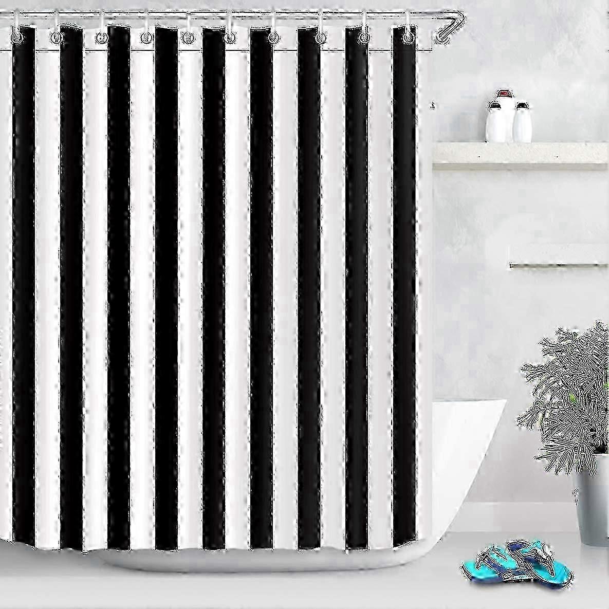 Waterproof Black and White Striped Shower Curtain 180x180 cm Polyester Bathroom Decor with Loop Hooks
