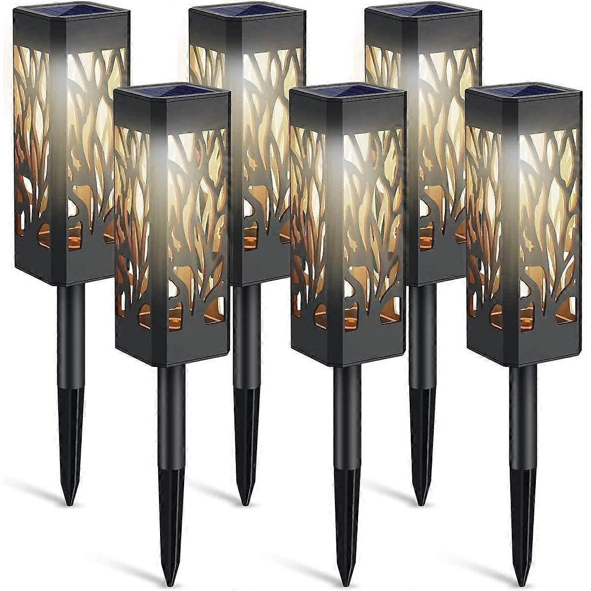 Waterproof LED Solar Lantern Set, 6 Warm White Lights for Garden, Driveway, and Landscape Decoration.