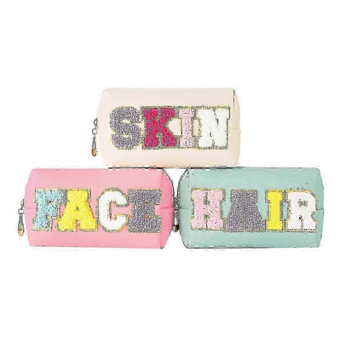 Waterproof PU Leather Travel Cosmetic Bags Set for Teenagers and Women 3 Piece Preppy Makeup Pouch
