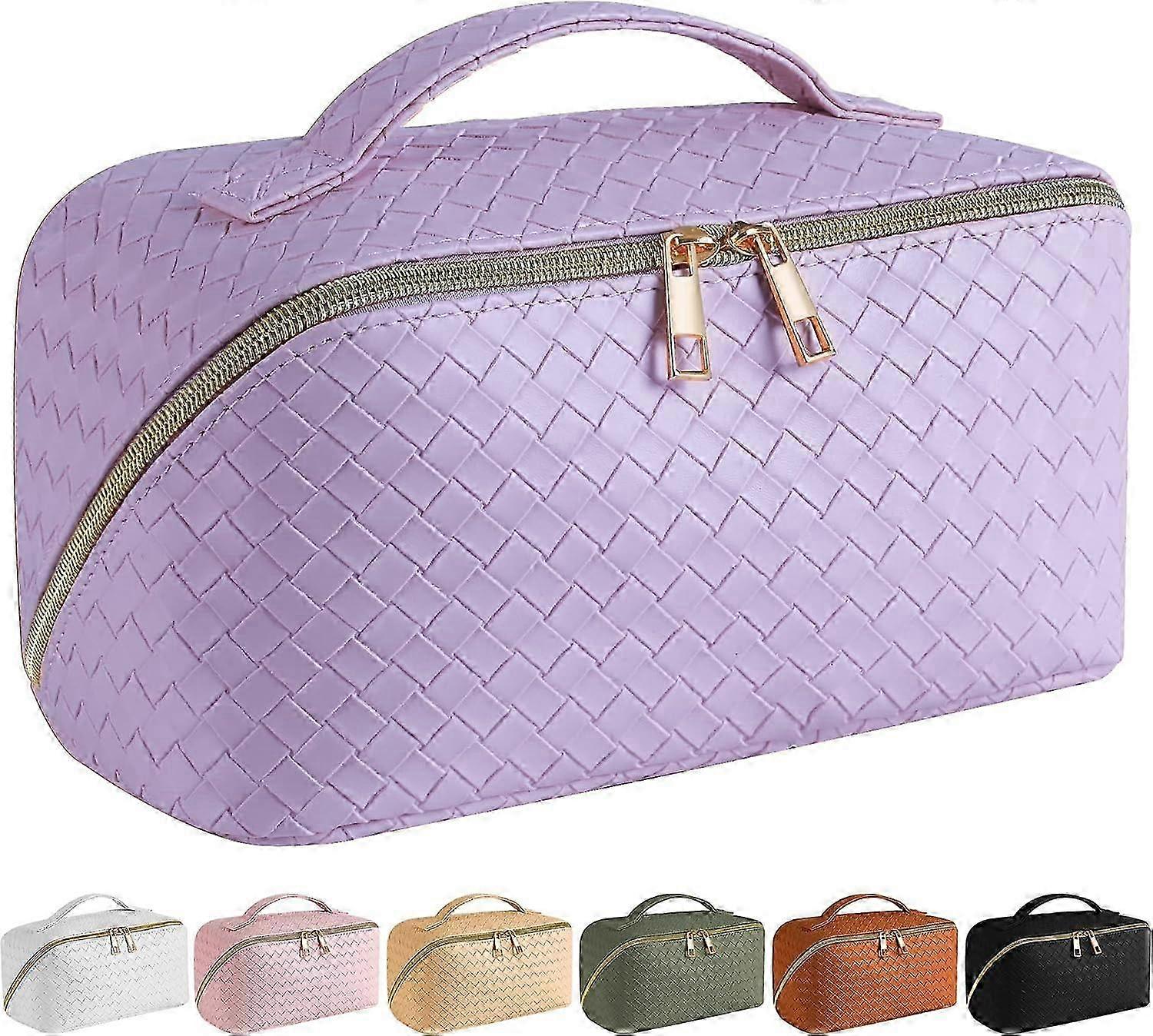 Waterproof PU Leather Makeup Bag - Large Capacity Travel Cosmetic Organizer (Purple)