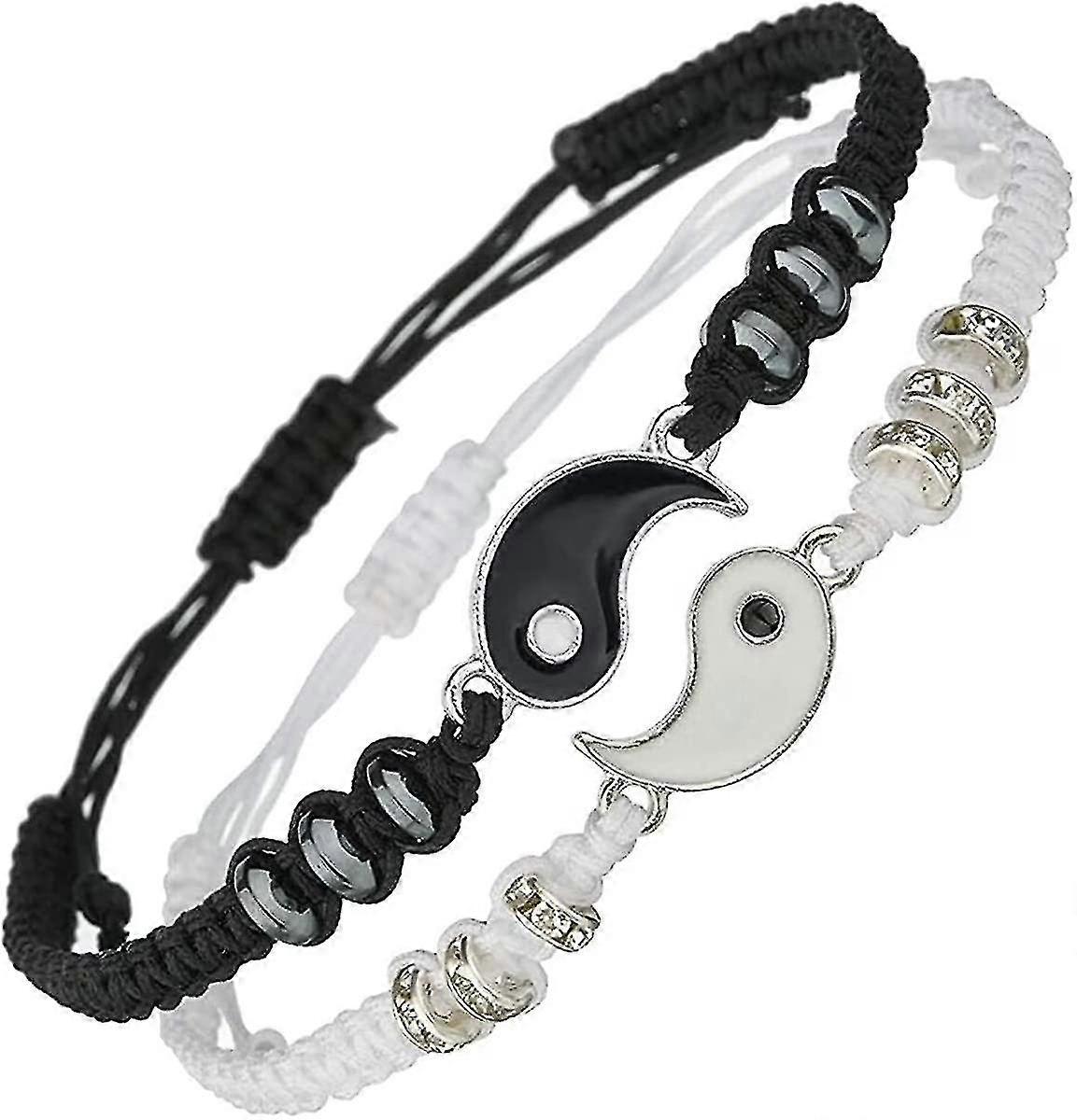 Yin Yang Adjustable Friendship Bracelet Set - 2 Matching String Bracelets