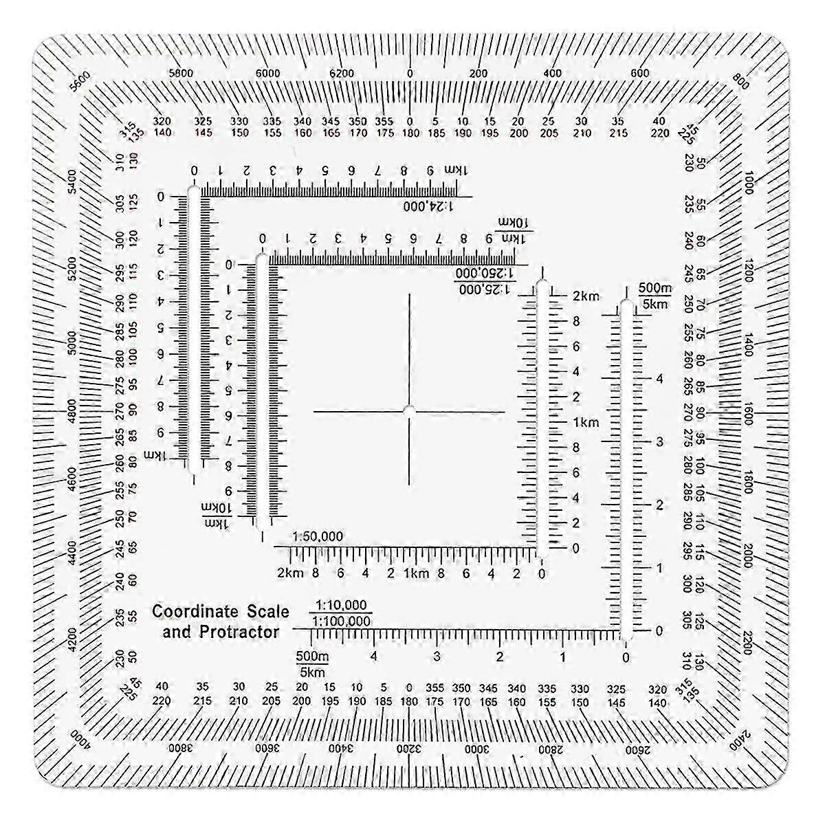Fits for UTM, MGRS, USNG or other metric based coordinate systems. Marked with degrees and mils measurements around the circumference of the protractor. Used with the following map scales: 1:24,000 1:25,000 1:50,000 1:10,000 1:100,000 1:250,000 1:500,000. Includes a 1:24,000 scale for 7.5 minute topographic maps. Larger 1:50,000 and 1:100,000 scale rulers for maps with grid spacing. Material: Plastic Color: As shown Package Contents: 1 x Square Map Coordinate Scale Protractor Only the above package content, other products are not included. Note: Light reflection and different displays may cause the color of the item in the picture a little different from the real thing. The measurement allowed error is +/- 1-3cm.