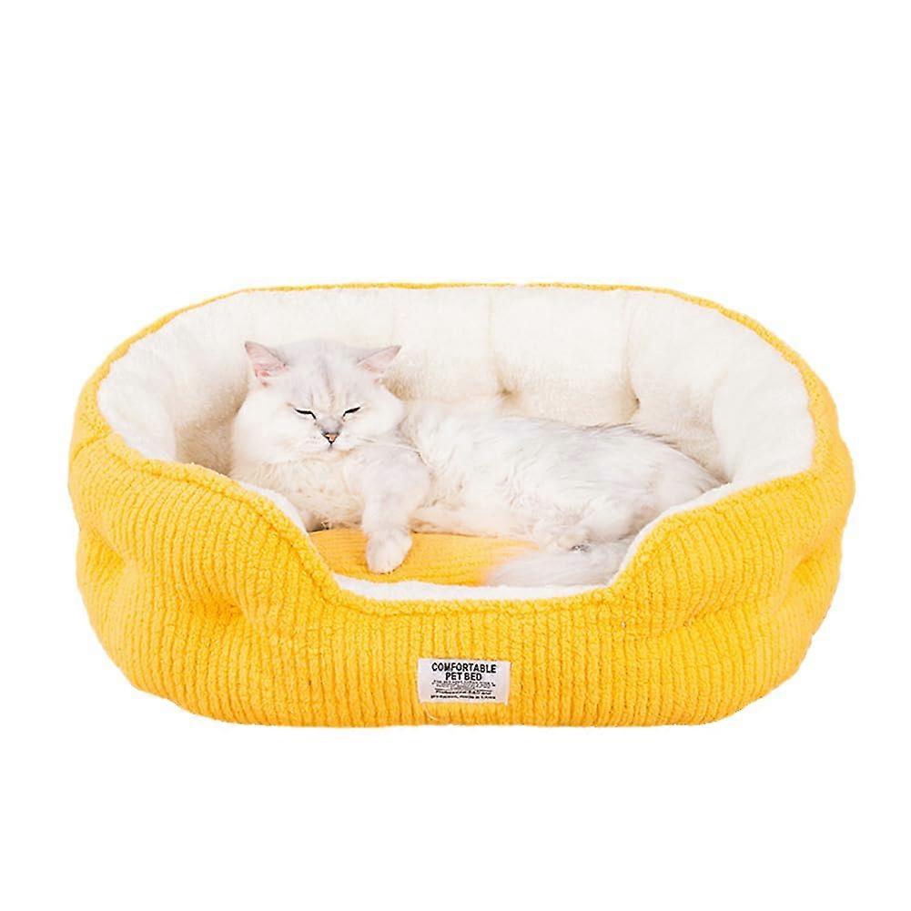 Dog Basket with Raised Edges, Fluffy Dog Bed, Soft Mat, NonSlip, Pet Bed for Small, Medium, Large Dogs, Cats 60*50*23cm Yellow