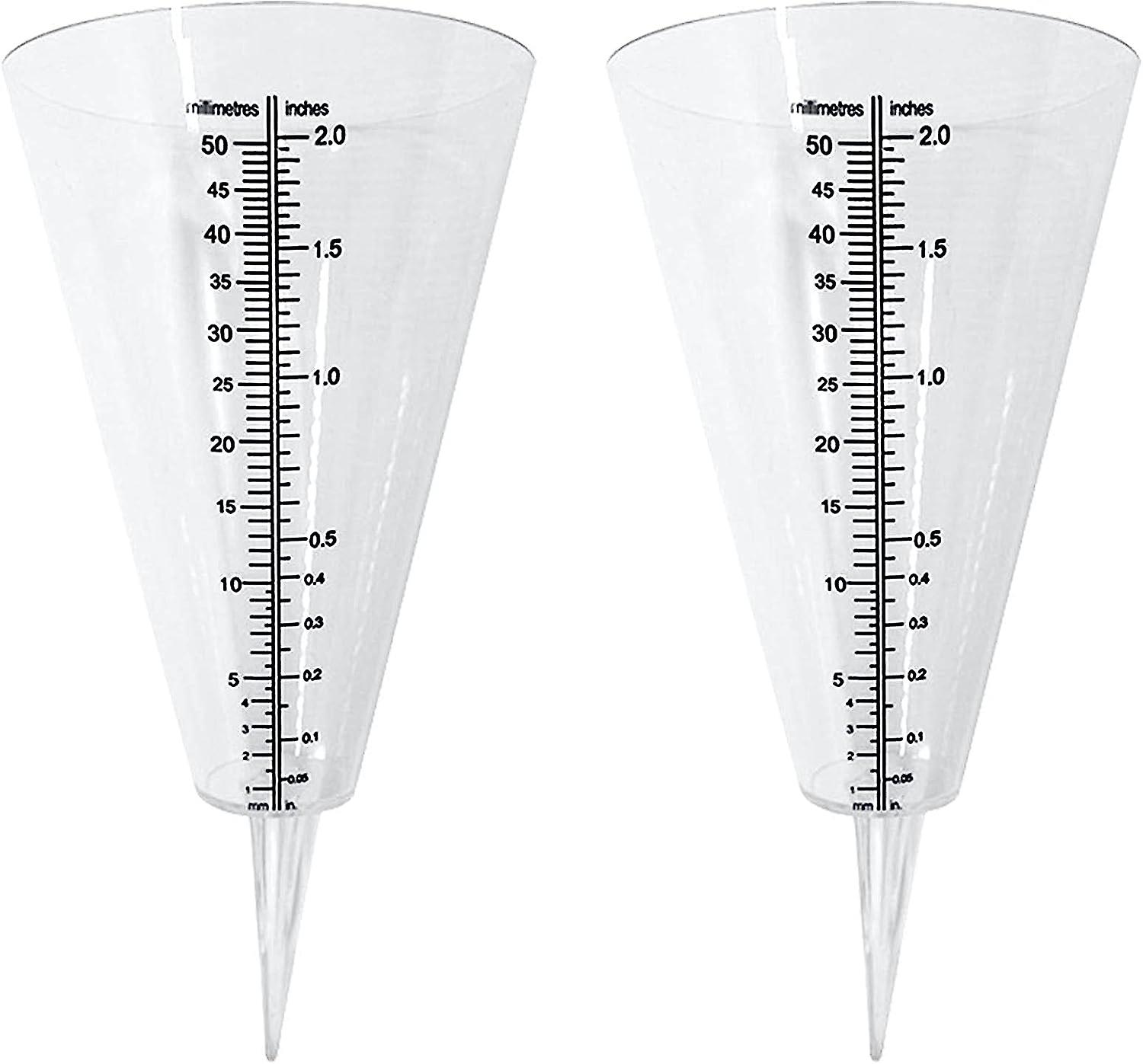 Rain Gauge, Outdoor Rain Gauge, 2 Transparent Cone Rain Gauge with Dual Scale for Rain Monitoring in Garden, Outdoor