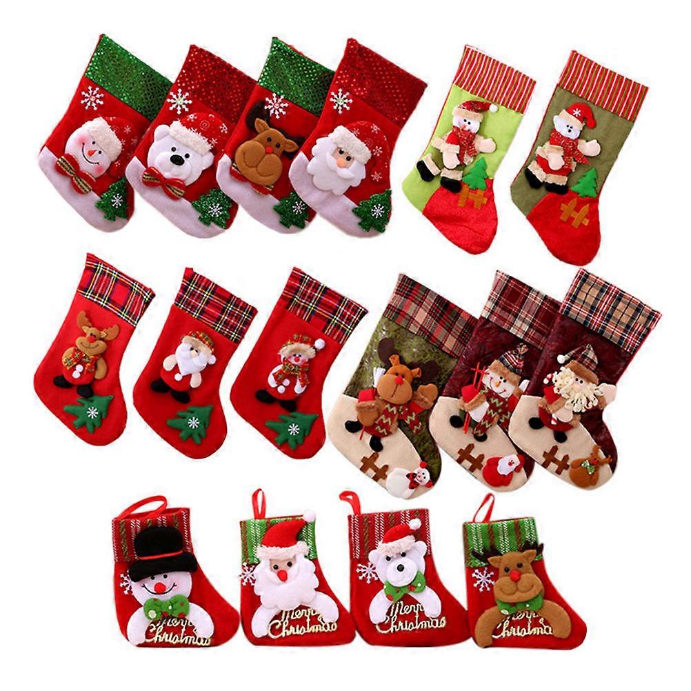 Snowman Decorations Embroidered Snowflake Stocking Festive Decoration 6Pcs Fabric