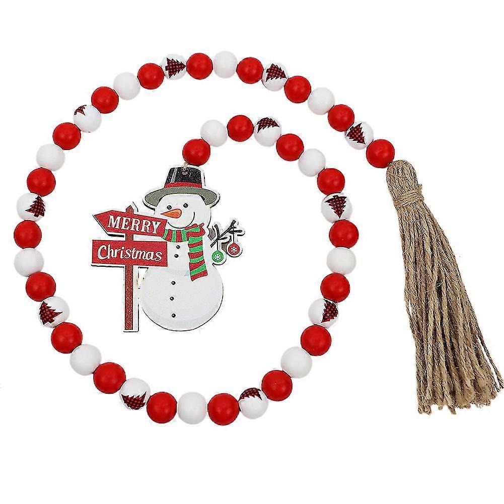 Christmas Garland With Wooden Beads And Ornamental Pompoms With Snowman,hanging Garland Bead(about 85cm)