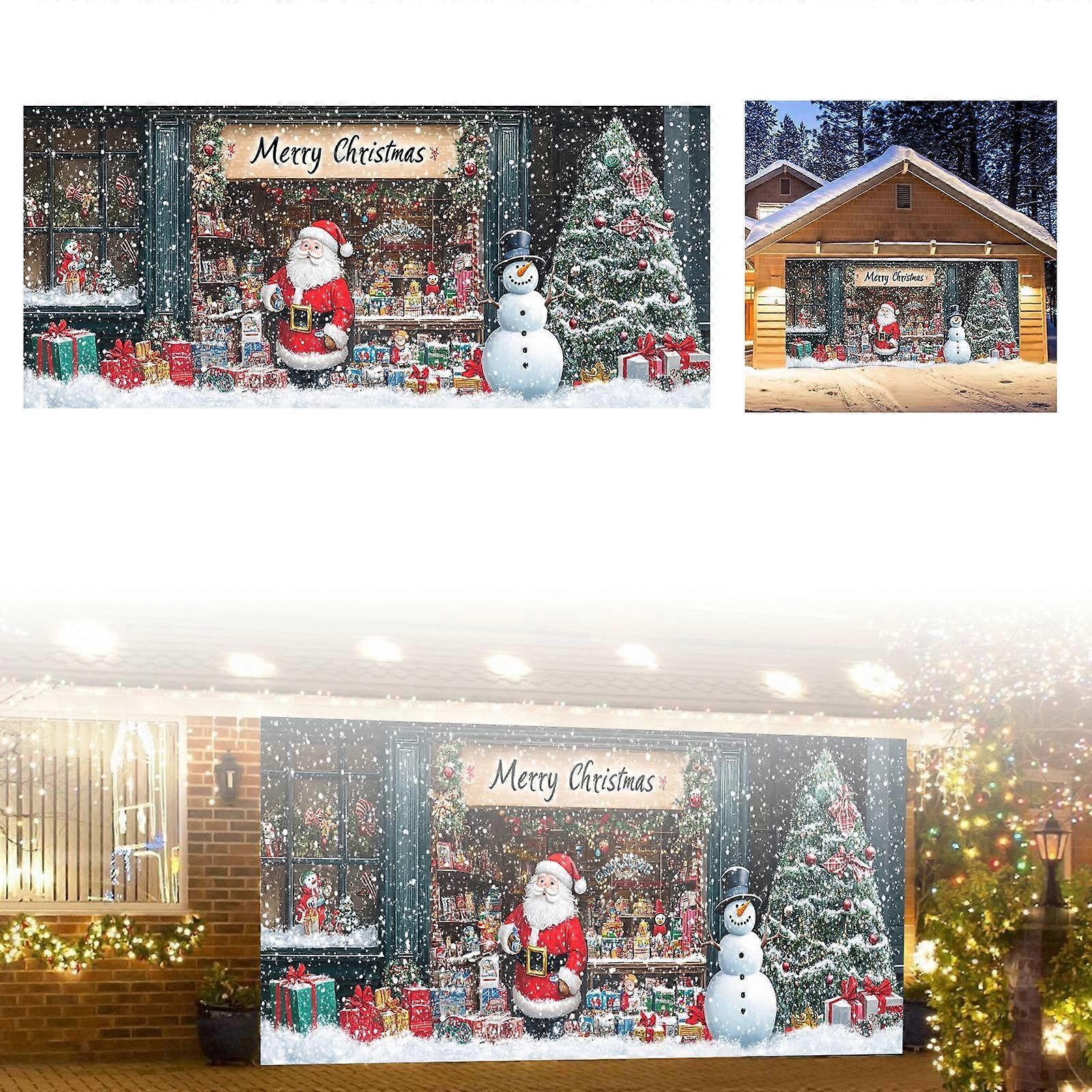 Large Christmas Garage Banner With Snowflakes And Santa Design
