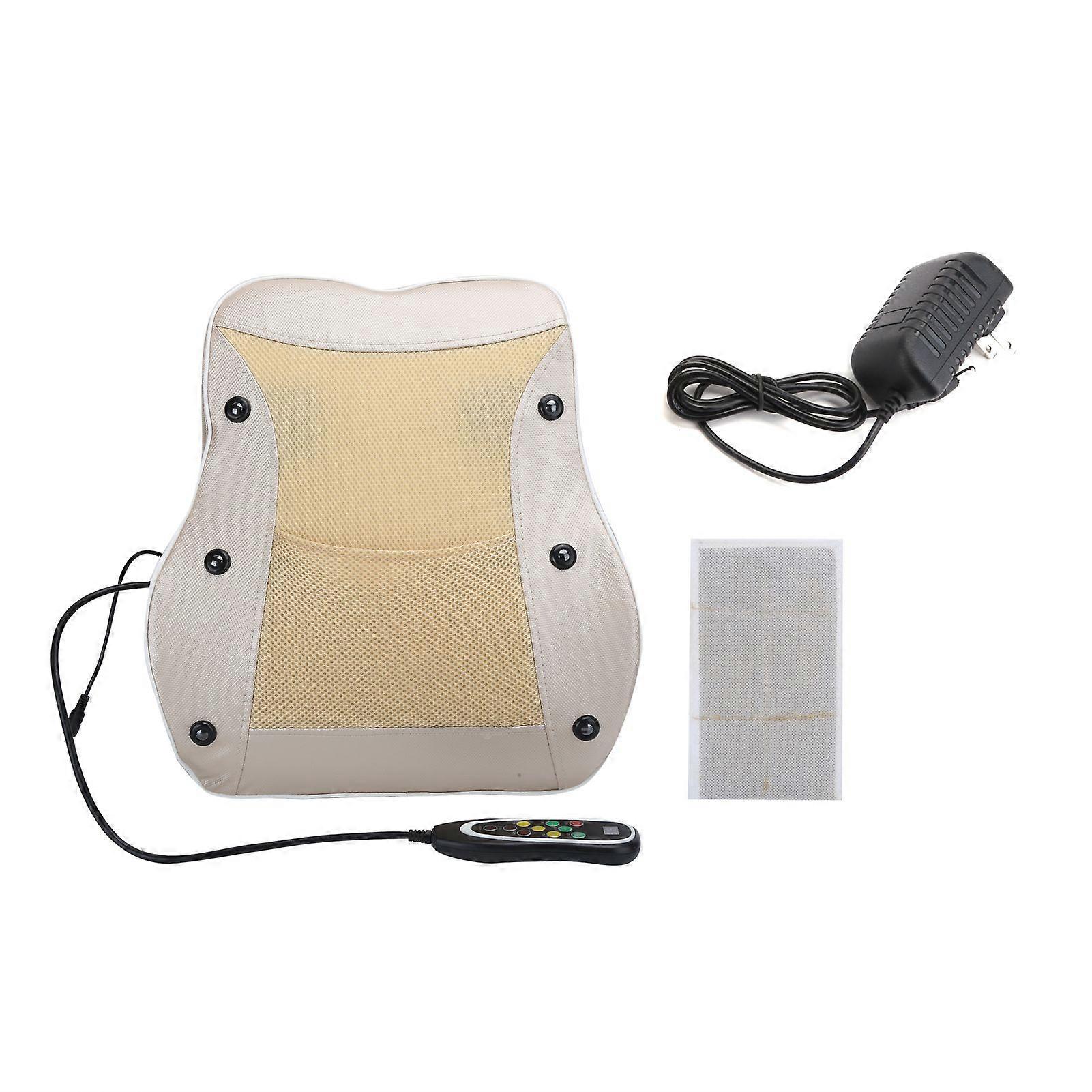 specification: _x000D_Item Type: Massage Pillow_x000D_Material: Semen Cassiae + Wormwood + Pearl Cotton_x000D_Color: Gold_x000D_Type: 10 Button_x000D_Plug Type: US Plug_x000D_Voltage: 100-240V_x000D_Applicable People: Cervical spine reversal, cervical spine straightening, dizziness, neck pain, bone hyperplasia, hand numbness and pain, high blood pressure, insomnia and dreams_x000D_Applicable Parts: Neck, head, back, waist, legs, feet_x000D_Usage:_x000D_Press the DC plug of the power cord and the adapter, and then plug the massager into the power socket._x000D__x000D_Manual Button Description:_x000D_Turn on key: the default timing is 10 minutes when the machine is turned on, and the automatic massage and gasbag functions of the machine are turned on at the same time; press again, the default timing is 20 minutes; press again to default to 30 minutes; press again to turn off._x000D_Vibration button: press this button to turn on the vibration function; press vibration "+" vibration "-" to manually adjust 9 vibration modes._x000D_Gasbag button: Press this button to activate the gasbag massage function; press the gasbag "+" gasbag "-" to manually adjust the gasbag strength._x000D_Heating button: press this button to turn on the heating function; press heating "+" heating "-" to manually adjust the three-level heating temperature._x000D_Each function can be individually controlled and adjusted._x000D__x000D_Note:_x000D_1. If the massage head layout is damaged, it is strictly prohibited to use it._x000D_2. It is strictly forbidden to insert your fingers into the lower end of the massage head to avoid pinching._x000D_3. The device has a heating surface, so people who are not sensitive to heat must pay attention to it._x000D_4. Do not use the portable power cord to suspend or shake the body, which may cause the core to be disconnected and fail to work normally._x000D_5. Prevent water or other corrosive liquids from entering the machine, causing malfunctions and damaging the machine._x000D_6. This product is not intended to be used by people with physical impairments, sensory or mental impairments, or lack of relevant experience and knowledge [including children], unless someone responsible for their safety supervises and guides their use of this product._x000D_7. Children should be taken care of and ensure that they do not play with this product._x000D_8. This machine should not be used in humid environments and bathrooms, and should not be pressed or stepped on._x000D_9. Do not use the massager within half an hour after a meal, otherwise it may produce undesirable effects due to different body constitutions._x000D_10. If you feel unwell during use, stop using it immediately._x000D_11. Sleeping during massage is strictly prohibited to prevent long-term stimulation of a certain part and affect healths._x000D_12. During pregnancy, patients with cervical pain, acute disease, heart disease and other physical abnormalities must use this product under the guidance of a doctor._x000D_13. The power plug must be unplugged before cleaning or after use.